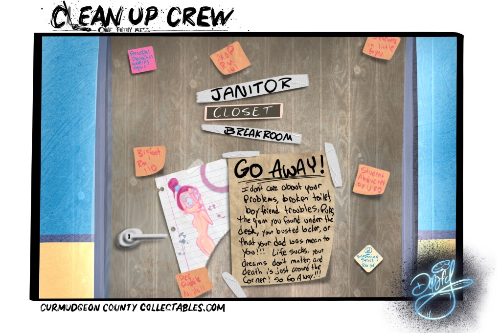 David is the creator of the Alaskan webcomic Cabin Fever, author and illustrator of several books, and the mind behind Curmudgeon County Collectables. Growing up in Alaska he discovered early in life the joys of exploring the outdoors under the northern lights and the midnight sun. He also discovered mosquitoes, bears, sunburn and Bigfoot……okay, Bigfoot’s debatable. While recovering from the joys of the outdoors he happened upon his favorite pastimes, drawing and daydreaming! He is a member of the Society of Children’s Book Writers and Illustrators, a closet musician, and a big fan of pizza! View all posts by Curmudgeon County Collectables