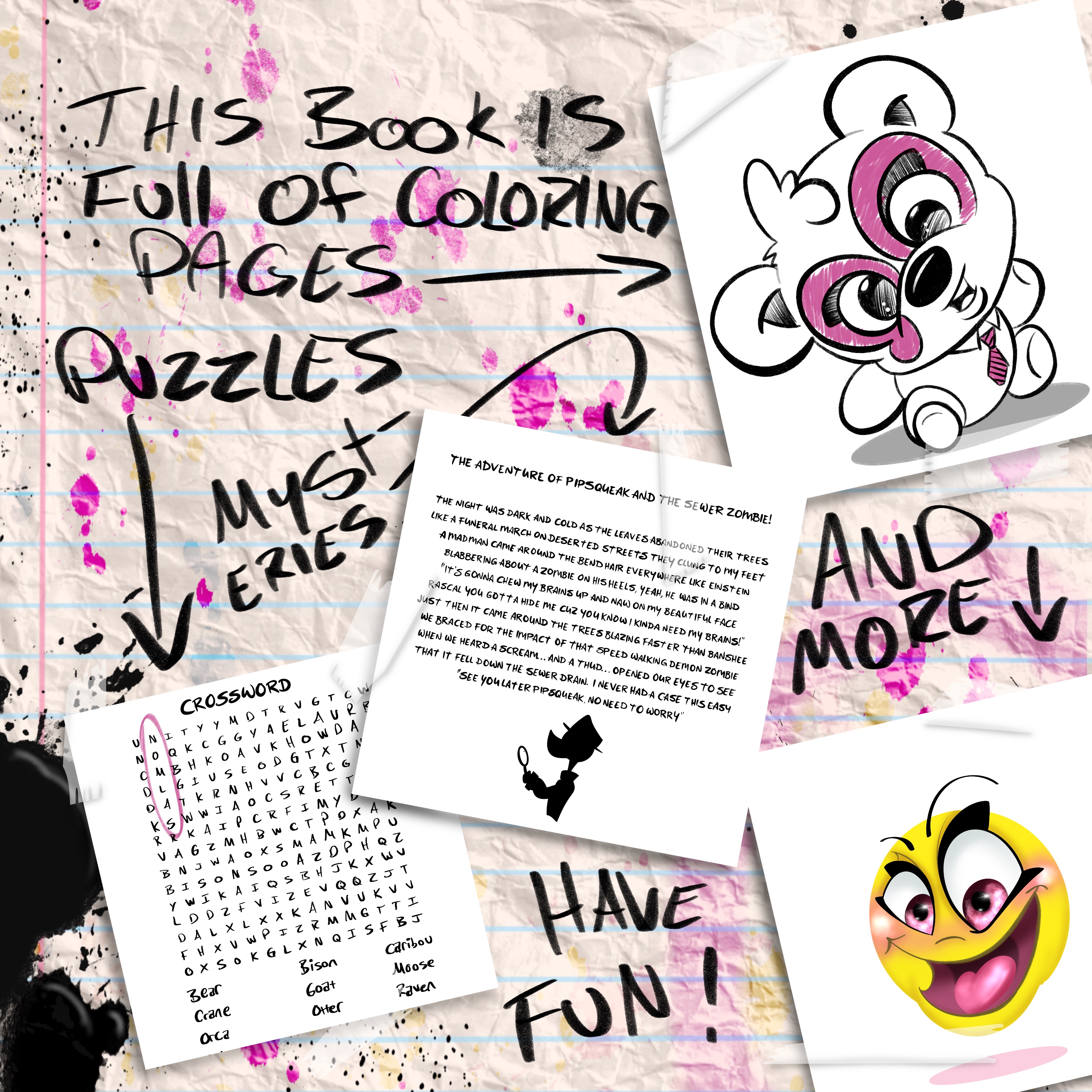 This whimsical story is filled with full color illustrations, two bonus mini mysteries, as well as concept art that explores the creation and development of the characters in the story! You can also see the case from Rascal (the dog’s) perspective as he goes about solving the case!…or thinks he does!