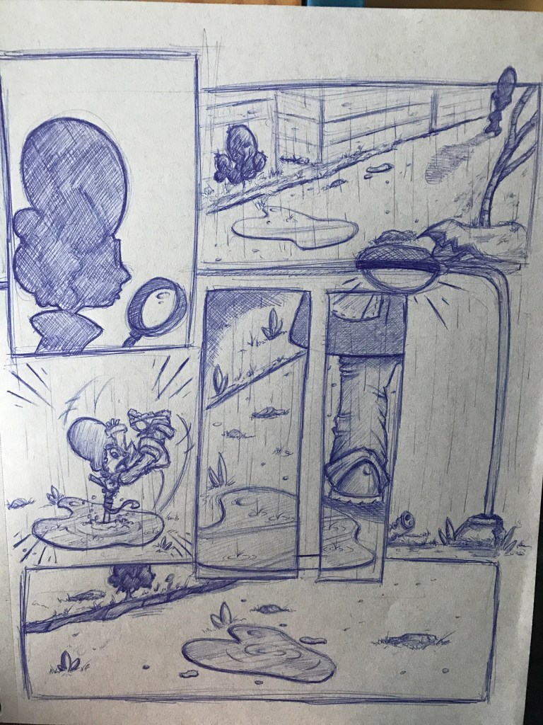 A little sneak peak at a page from our upcoming story The Mudsuckle Ritual: a bonehead detective mystery!