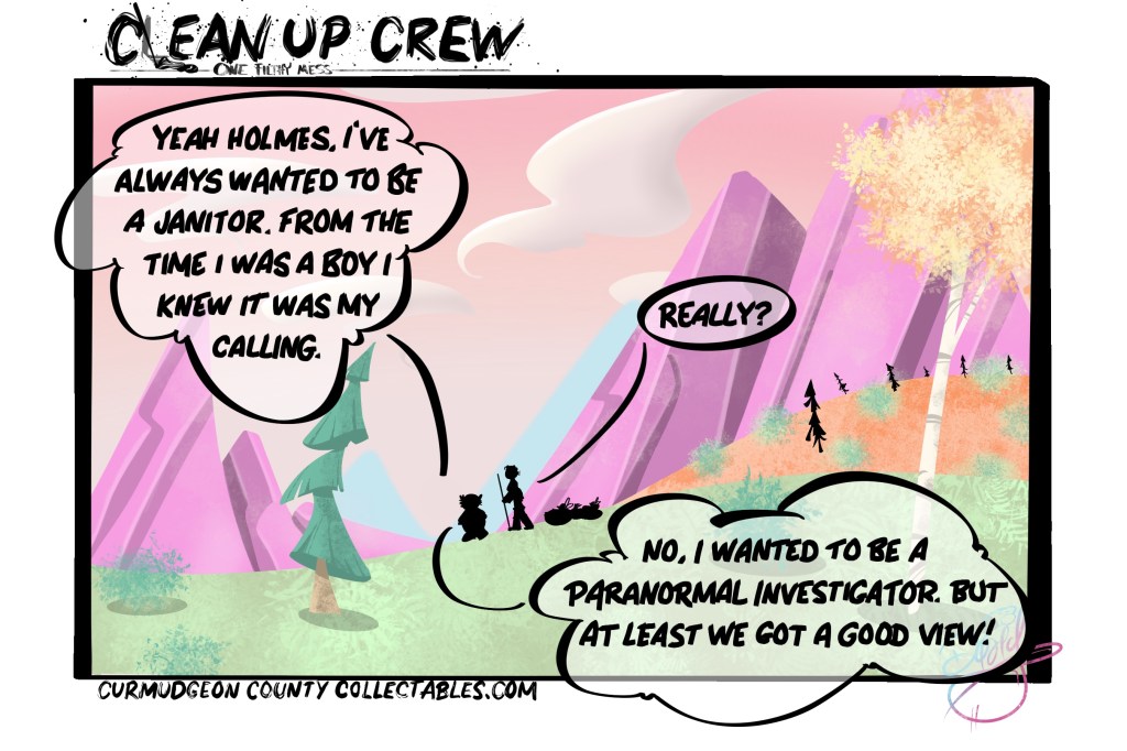 Looking on the bright side on this beautiful autumn day! I was really in the mood to do a bit of a landscape and to see the mountains. For those who are familiar with our book Small Time Shenanigans you’ll notice that this comic takes place in the same world and around a location spoken of a number of times in that book, Dixon City High!