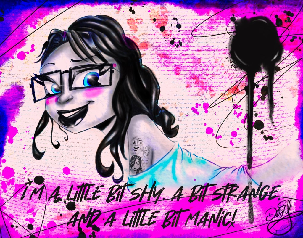 This edgy work looks as if a punk love song were knifed through the heart and proceeded to gush blood all over the canvas! This cartoon portrait of a pink punk girl screams a sentiment that we have all experienced. The dark eyes and full lips give this character a sweet, seductive look, while the nose ring, hair, and outfit show you that this is no Disney princess! The bright colors and comic drawing bring to mind vitality and youth, while the splotches, scratches, and distressed nature reveal the wear and tear of real life. It’s love gone black! This unique work was designed for a poster, but can easily be transferred to any other product on the site! Want to bleep love while on the beach? Then throw it on a towel! Want to bleep love with your friends on your way to the movies? Then throw it on a t-shirt! Maybe you want it on your sneakers, key-chain, or coffee cup? No problem! Or even print it on your neighbor Brandon’s burgeoning beer belly! That is, if he wants to be run through the printer. Wherever you print it just remember, it was painted just for you by Curmudgeon County Collectables! Check it out on our store!