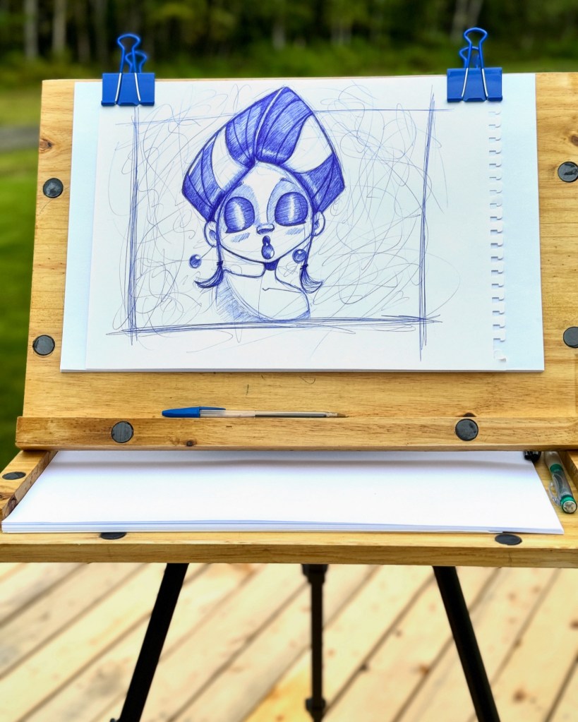 Built a little tripod easel for sketching on the go. Very adjustable, easy to pack, and even fairly stable. 🥳