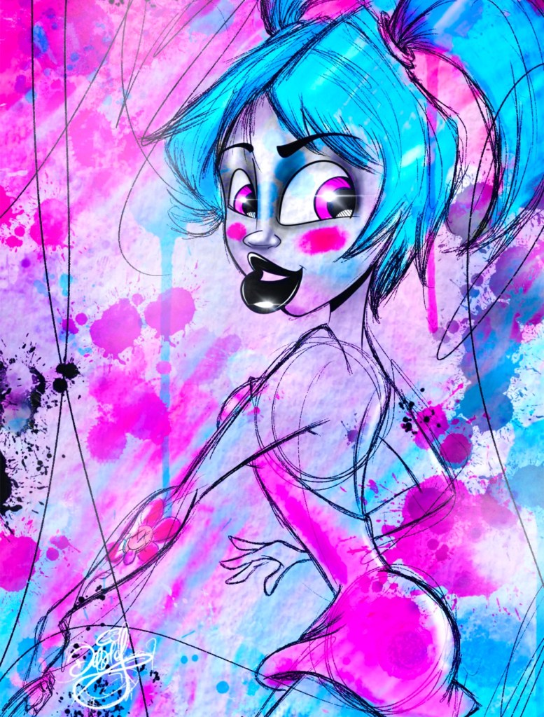 This black and white watercolor portrait is mixed with an abstract splash that makes this beautiful girl intense! The splashes of red, pink, green, and blue stand as a sharp contrast to the classical beauty! Adding a wild, untethered, and unearthly quality to this artwork. Black scribbles and splashes of ink adds an edgy quality that really makes it pop! Mixed together these qualities create a unique work that is more than just a portrait. It’s a summation of the experience of our youth. Troubling, dark days blend with bright hope for the future and erratic bursts of life where the world is so exciting it sets every nerve on fire!