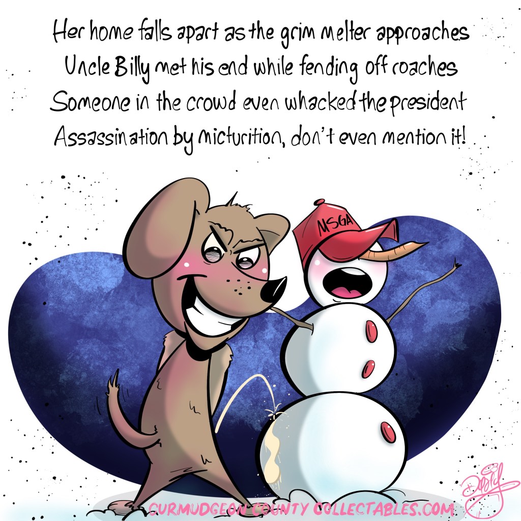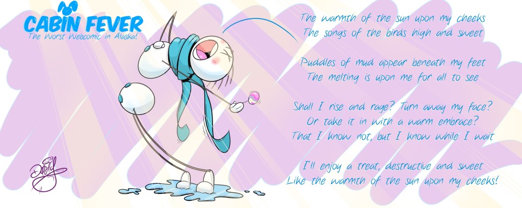 This is the third and final post of the snowman saga. It was fun to revisit these old comics. It’s a bit like reading an old journal entry. This particular one is an examination of mortality. How do we make peace with our own inevitable demise? Should we rage against the dying of the light, as Thomas suggests? Or embrace it as the natural progression of a mortal life?…For our snowman the answer is to simply live in the present. And enjoy a lollipop. 😜